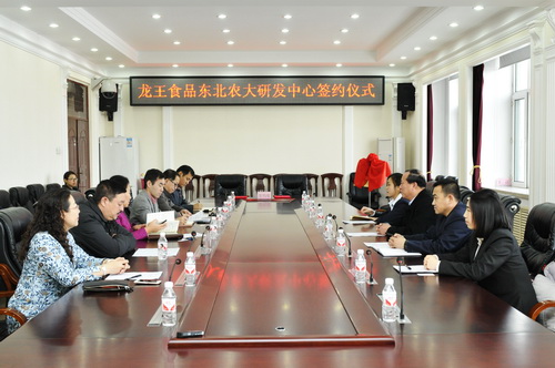 12月23日上午,“龙王食品东北农大研发中心”签约仪式在公司主楼604会议室举行。黑龙江农垦龙王食品有限责任公司董事长兼总经理李忠珠、技术部经理邵志远、检验中心主任邹文瑶、技术研发部经理刘海静;公司副董事长郑秋鹛,新农村发展研究院常务副经理孙占峰、副经理朱志猛,公司党委书记张显伟、副经理刁铁军、许晓曦教授等参加签约仪式。签约仪式由孙占峰主持。