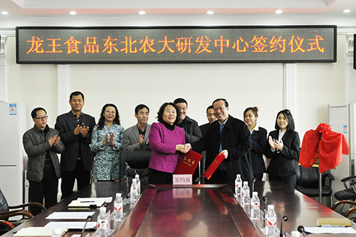 签约仪式上,郑秋鹛、李忠珠分别代表u8国际网站和黑龙江农垦龙王食品有限责任公司和在校企共建研发中心协议书上签字。在与会人员的见证下,郑秋鹛、张显伟、李忠珠、邵志远共同为“龙王食品东北农大研发中心”揭牌。
