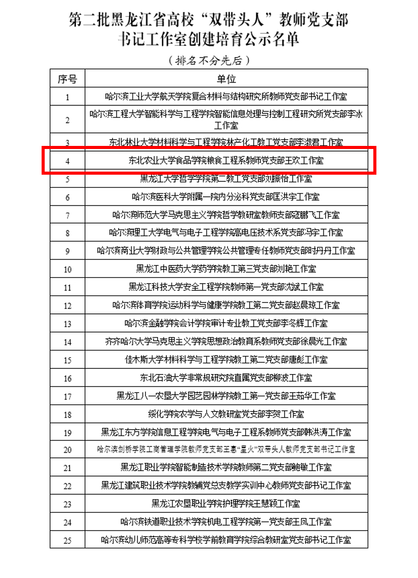 公司粮食工程系教师党支部王欢工作室获批第二批全省高校“双带头人”教师党支部书记工作室创建培育单位