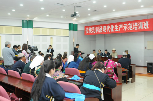 5月22日,传统乳制品现代化生产示范培训班的开班仪式上午9点在公司图书馆229举行。公司党委书记张显伟、高级工程师程涛、研究员潘文彪、新巴尔虎左旗就业服务局局长苏德、昂格乐玛奶食品厂会长特木尔巴根等来自内蒙古和西藏的牧民参加了开班仪式。仪式由u8国际平台副经理刁铁军主持。