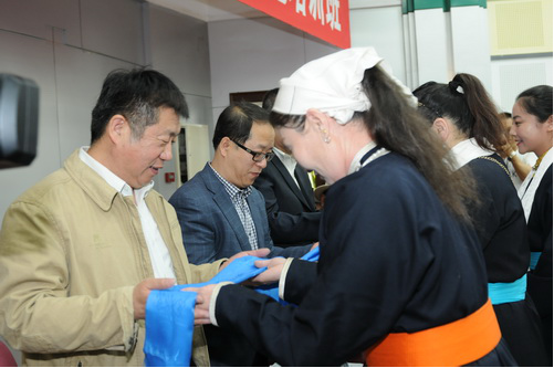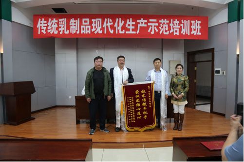 来自内蒙古自治区的新巴尔虎左旗就业服务局局长苏德代表牧民感谢u8国际平台的专家们多年来为蒙区农牧民搭建的奶制品深加工操作平台,以及为蒙区农牧民致富做出的卓越贡献。他说,随着互联网以及加工生产方式的变革,传统乳制品的生产和推广也面临全新挑战。目前蒙区传统乳制品企业多为中小微型,缺乏规模化经营及统一的行业标准、存在工艺技术传承方式单一、品种和口味地域差异显著等问题。他表示,u8国际平台是我国现代乳业加工的先驱,具备雄厚的科研实力和广泛的社会影响力,培训班更是公司以传统乳制品创新研发为依托,提升行业生产规范、科技水平以及市场竞争力为主旨的惠民行动,对改善农牧民的生产和生活质量有着重要的促进作用。希望能与u8国际平台进行更加广泛和深入的交流合作。他同时强调,希望学员把握难得的机会,积极参与学习和实践,共同营造互动共进的氛围。为再一次表达对公司及公司的感谢,苏德携牧民为公司领导敬献哈达。