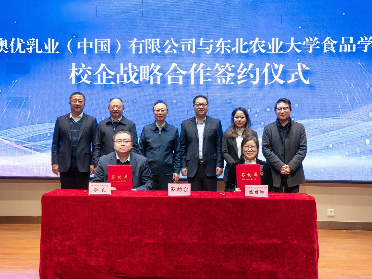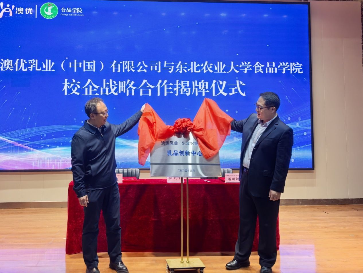 会上澳优乳业与公司举行校企战略合作签约和揭牌仪式。