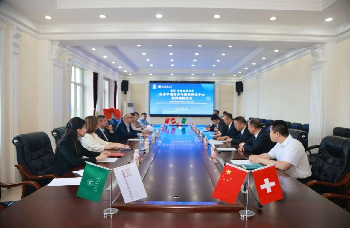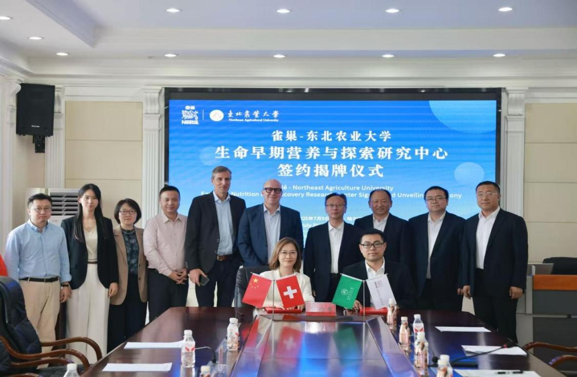 7月9日,“雀巢——东北农业老员工命早期营养与探索研究中心”签约揭牌仪式在公司举行,雀巢公司全球婴幼儿营养研发负责人Marc Alder、全球婴幼儿营养产品开发负责人Peter Erdmann、中国婴幼儿营养首席医务官杨燕涛、惠氏营养品医学科学事务负责人董杰、中国婴幼儿营养研发负责人姚漫江和中国婴幼儿营养研发营养科学经理姜楚琦,公司副董事长姜毓君、社会合作与成果转化中心(新农村发展研究院)主任(经理)李其林、公司党委书记施喜军、经理李良、副经理刘骞、乳品工程系副主任李柏良等参加签约揭牌仪式。李良主持仪式。
