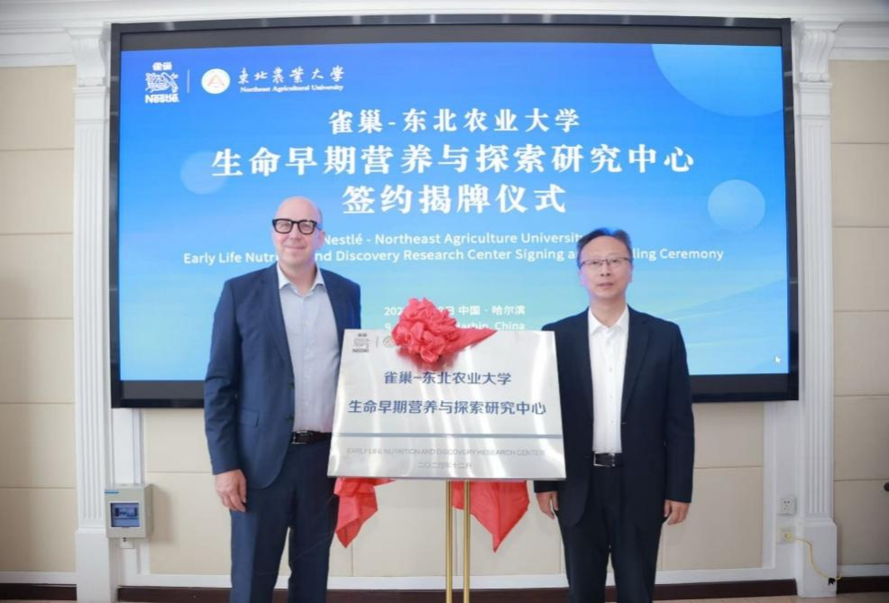 姜毓君、Marc Alder共同为“雀巢——东北农业老员工命早期营养与探索研究中心”揭牌。