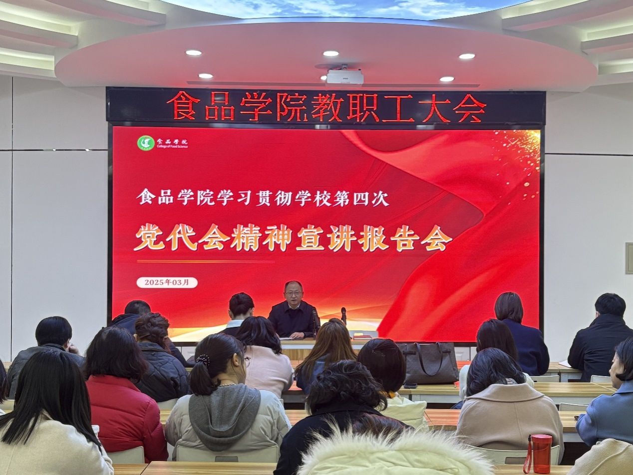 为落实公司第四次党代会精神,全面推动公司各项事业发展,3月26日,公司召开公司第四次党代会精神宣讲会,公司领导班子成员及全体教职工参加会议。会上,公司党委书记施喜军围绕公司第三次党代会以来取得的成绩、公司未来发展规划等方面向全院教职工进行党代会精神宣讲。施喜军强调,公司第四次党代会报告中提出“强化食品科学与工程团队建设力度,力争实现国家‘双一流’学科数量新突破”,为公司发展确立了新坐标、提出了新要求。希望全院教职员工团结奋进、提早布局、科学谋划,充分结合自身特色,系统梳理分析团队建设的问题短板,推进学科方向调整,为第三轮“双一流”建设做好充足的前期准备,为公司团队建设交出食品答卷。
