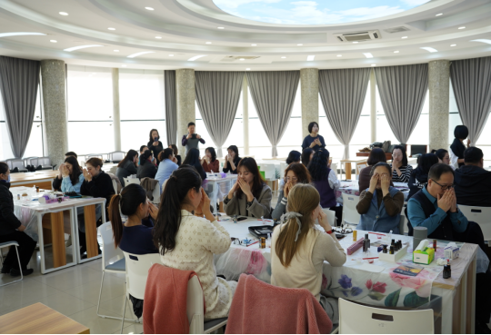 省绿色食品研究院教师郑环宇和世中联精油疗法菁英讲师高明,为公司女教工普及精油相关知识,体验精油冥想,制作手工精油口红,并以互助的方式体验精油头疗。在舒缓的香氛和音乐中,参加活动的女教工身心得到了充分的放松。在专业讲师的指导下,一支支美丽的口红制作完成,天然的材料在慧思与巧手间成为节日最特殊的礼物,温情与友谊在欢声笑语中定格了生活的美好。