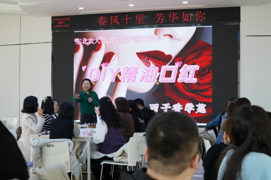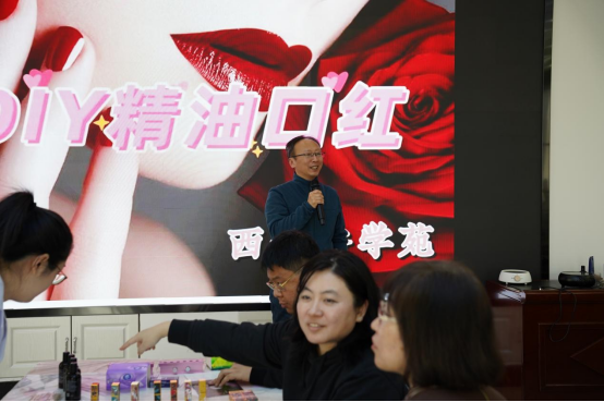 为迎接第113个“三八国际劳动妇女节”,舒缓女教工工作压力,公司工会于3月8日中午在食品楼315会议室,组织开展了精油健康体验及DIY精油口红制作活动。公司党委书记潘俊波、经理姜毓君、副经理刁铁军和公司30余位女教工参加了此次活动。活动由党委副书记、工会主席钱芳主持。