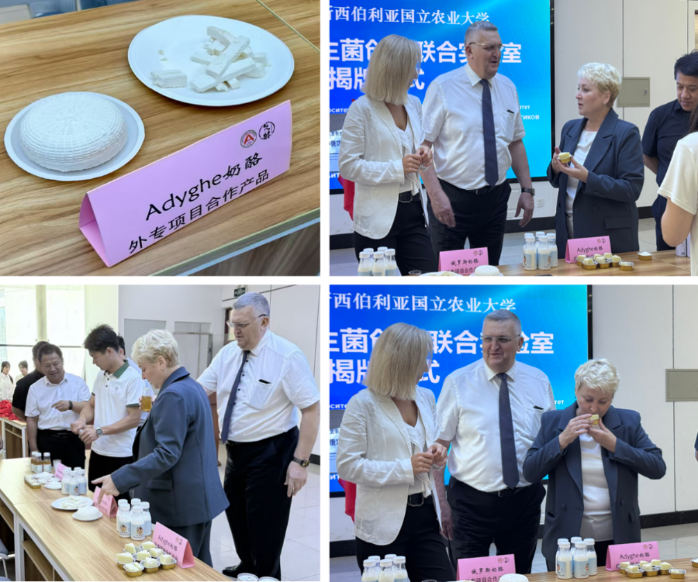仪式现场,两校领导共同品鉴由双方合作研发的多款产品,并就进一步深化合作达成重要共识。公司科研团队重点展示了近期联合开发的格瓦斯、酸奶、奶酪等系列产品,现场嘉宾进行品尝与体验,并对相关成果的创新性、实用性与应用潜力给予了高度评价。品鉴期间,双方围绕产品优化路径、市场转化策略以及科研协同机制等议题展开了深入交流,明确将以共建实验室为平台,持续整合双方技术优势与资源,共同推动合作走向深入。