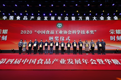 公司王绍东团队(右九)获领“中国食品工业协会科学技术”二等奖