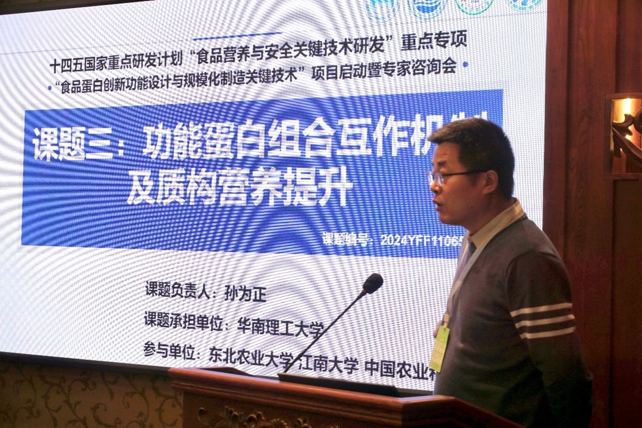 王宁代表省科技厅对项目的立项启动表示祝贺。他表示,本项目是落实习近平总书记关于树立大食物观重要论述的具体行动。黑龙江省作为农业大省,拥有丰富的自然资源和坚实的产业基础,是国家粮食安全的压舱石。近年来,省委、省政府高度重视农产品加工产业发展,先后出台黑龙江省加快推进农产品加工业高质量发展三年行动计划和黑龙江省支持农产品精深加工业高质量发展政策措施等文件,为推动农产品加工领域的科技创新与产业创新深度融合提供了有效保障。作为项目的推荐单位,省科技厅将深入贯彻落实省委、省政府工作部署,全力支持国家重点研发计划项目的有序实施,为推动食品加工产业发展贡献科技力量。希望项目组严格按照项目管理要求,精心组织,科学规划,团结协助,确保项目顺利推进,为推动蛋白食品产业可持续发展作出应有的贡献。