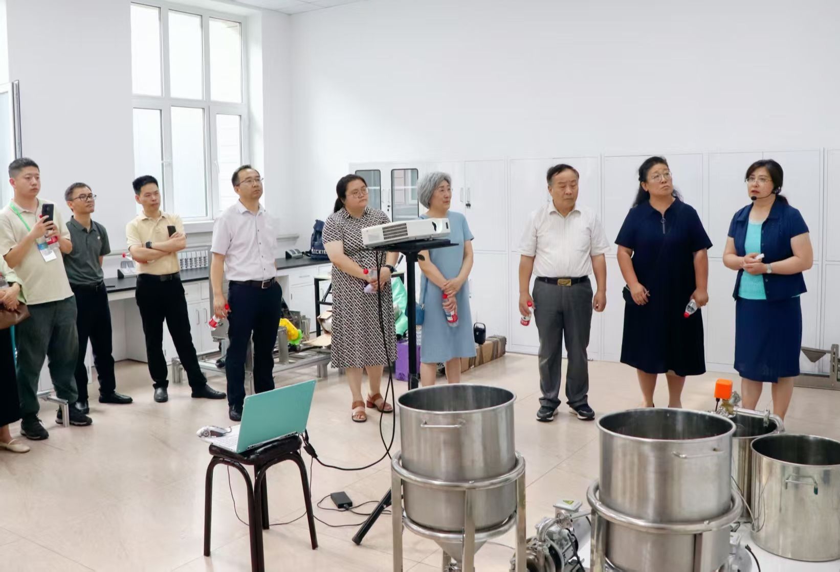 国家“十四五”课题的任务负责人、公司工程公司教授迟媛及团队成员详细介绍了专用型液蛋基料差异化加工与品质提升装备创制的完成情况,并现场演示了液蛋基料生产精确配比及实时在线监测设备的运行过程。国家“十四五”项目负责人刘静波指出,工程公司团队的液蛋基料生产线实现连续化生产和在线监测技术应用前景广阔,可进一步升级优化,在企业生产线开展适配验证。