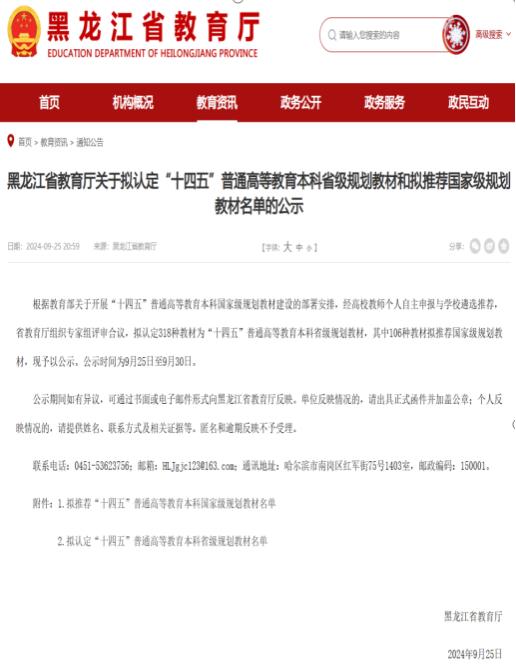 按照黑龙江省教育厅相关文件要求,公司高度重视,积极组织教师申报,经过公司推荐和公司评审,共推荐42部教材参与“十四五”普通高等教育本科省级规划教材评选。