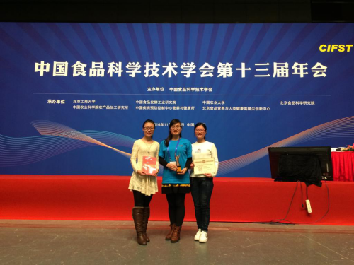 年会同时为第三届“杜邦营养与健康”海峡两岸员工创新竞赛获奖师生颁奖,由u8国际平台李晓东担任指导教师,2014级王鹏、杜宇航等同学研发的“牛魔王活力奶酪”产品获全国二等奖,由张华江担任指导教师,2014级章智华、刁予希等同学研发的“黑粮芯—谷物发酵饮料”产品获得全国三等奖。