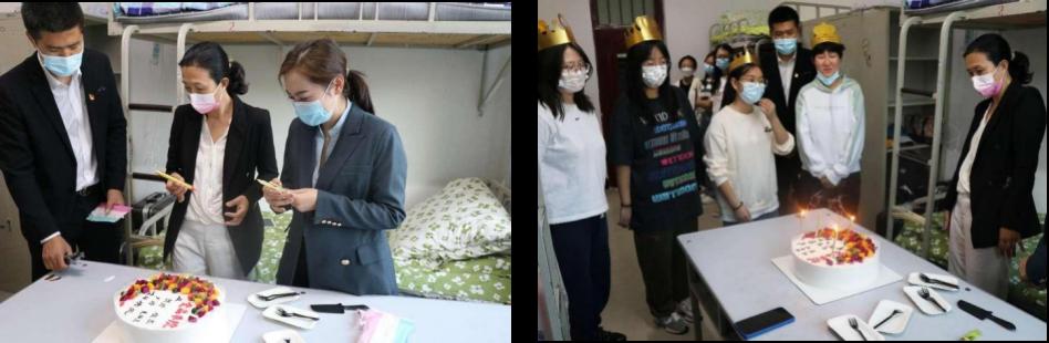30日下午,公司党委副书记带领新生辅导员老师,给4名新同学过了一个简单而又难忘的生日,食品2208班的尹婷同学说:“看到蛋糕的时候特别地激动、感动,感受到了老师们对我们满满的爱”。在烛光的呼应下,员工与老师第一次见面的陌生感荡然无存,虽是新生报到第一天,却充满了温馨和甜蜜。