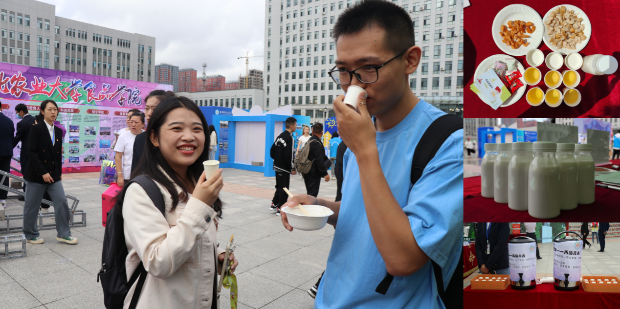 此外,公司还在两个迎新会场为新生和家长准备了酸奶、冷泡茶和香肠等特色产品,在提升新生“参与感”的同时,让新生直观感受到食品科学的魅力。