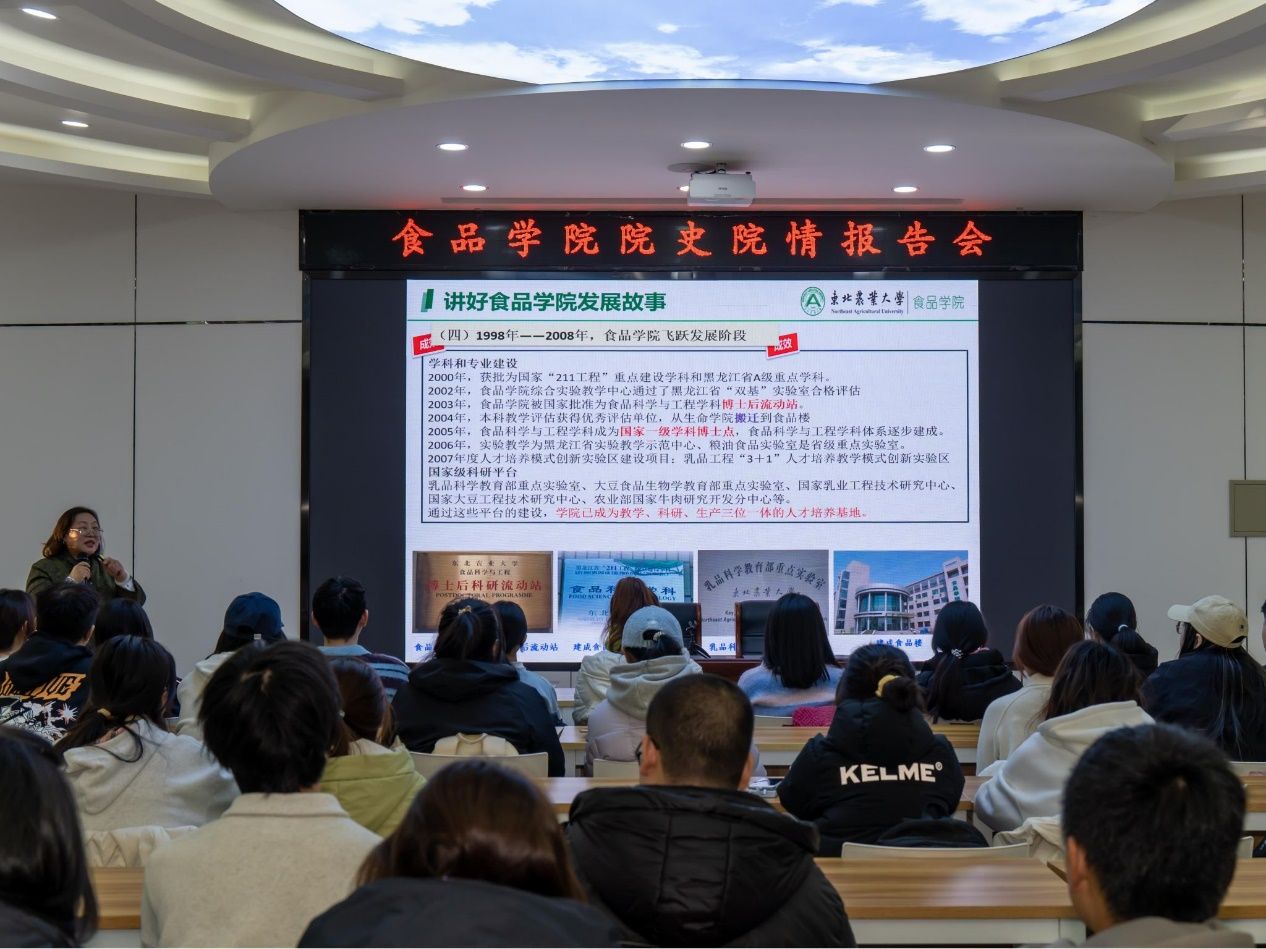 为深入贯彻落实立德树人根本任务,提升公司思想政治教育工作水平,引导新生更加全面地了解公司、公司发展历史,增强员工身份认同感,12月6日,公司在食品楼315报告厅开展院史院情教育报告会。辅导员李嘉博、冯可馨及2024级全体员工干部参加会议。报告会由公司党委副书记钱芳主持。