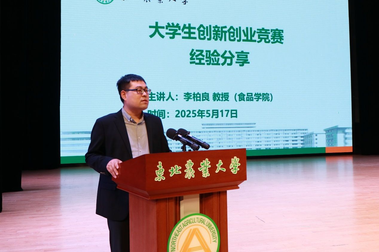 公司乳品工程系副主任李柏良作为骆承庠杯创新竞赛指导教师代表发言。他针对科创竞赛组队、选题、深耕核心技术、科研实践转化、科创教育引导和社会价值实现等问题以指导员工大创项目为例进行分享。