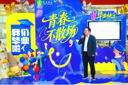 活动以记录青春点滴的温情视频开场,动人画面唤起在场师生共同回忆。姜毓君在致辞环节向毕业生们致以殷切期望。希望同学们以昂扬姿态投身社会,勇创佳绩为母校争光,争做品德、学识、体魄兼备的新时代“三好员工”。施喜军真挚祝愿员工们以赤子之心拥抱时代,锚定祖国所需,在奋斗中保持进取、涵养格局,与家国同频焕发光彩。李良鼓励同学们坚守初心使命,以无畏勇气跨越山海,在时代浪潮中淬炼出属于自己的精彩篇章。