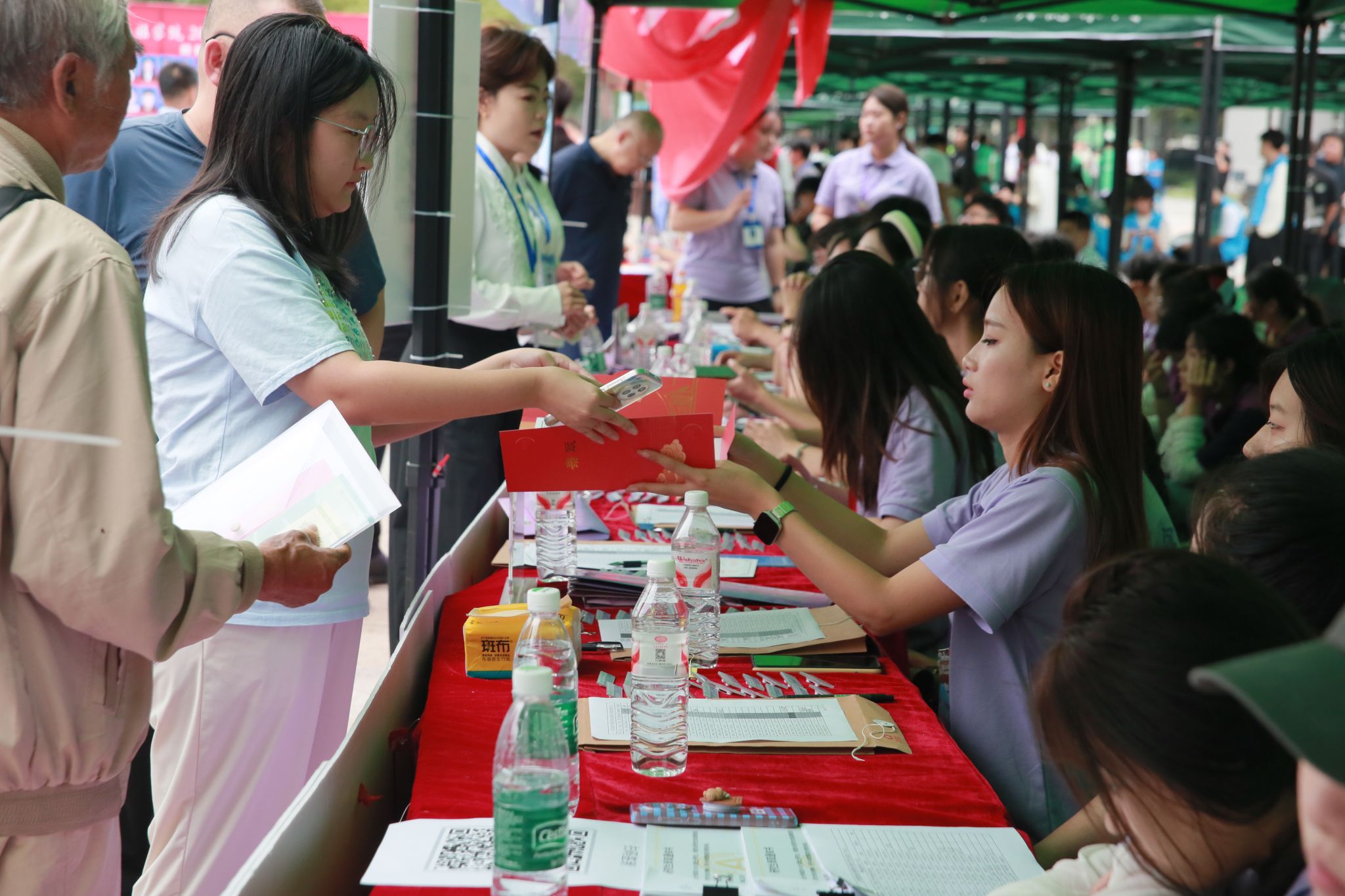 公司将报到现场精心打造成沉浸式“食品文化客厅”,以学科特色“食品紫”为主色调铺陈氛围。步入其中,折叠展板与潮流打卡墙串联起公司沿革、科研平台等核心信息,转角处的“奋斗长廊”则以扎根边疆、领航行业、留校深造三类榜样故事为新生锚定成长坐标。除了视觉浸润,更有温度满满的定制体验,NFC钥匙扣轻触即激活专属电子身份,透卡折射出“食品紫”渐变光影,集卡明信片解锁互动打卡趣味。在食品科技展台前,新生与家长现场品尝实验室出品的红肠、酸奶,以及茶艺社现冲的红茶,“东农味道”在香气氤氲中直抵心田。特别设置的“绿色通道”为家庭经济困难新生备好暖心“加油包”,从生活必需品到学业支持,全方位护航求学路。全程护航的还有志愿者们,他们一对一贴身服务,搬运行李健步护航,以微笑递上首张温暖的“食品家”名片。