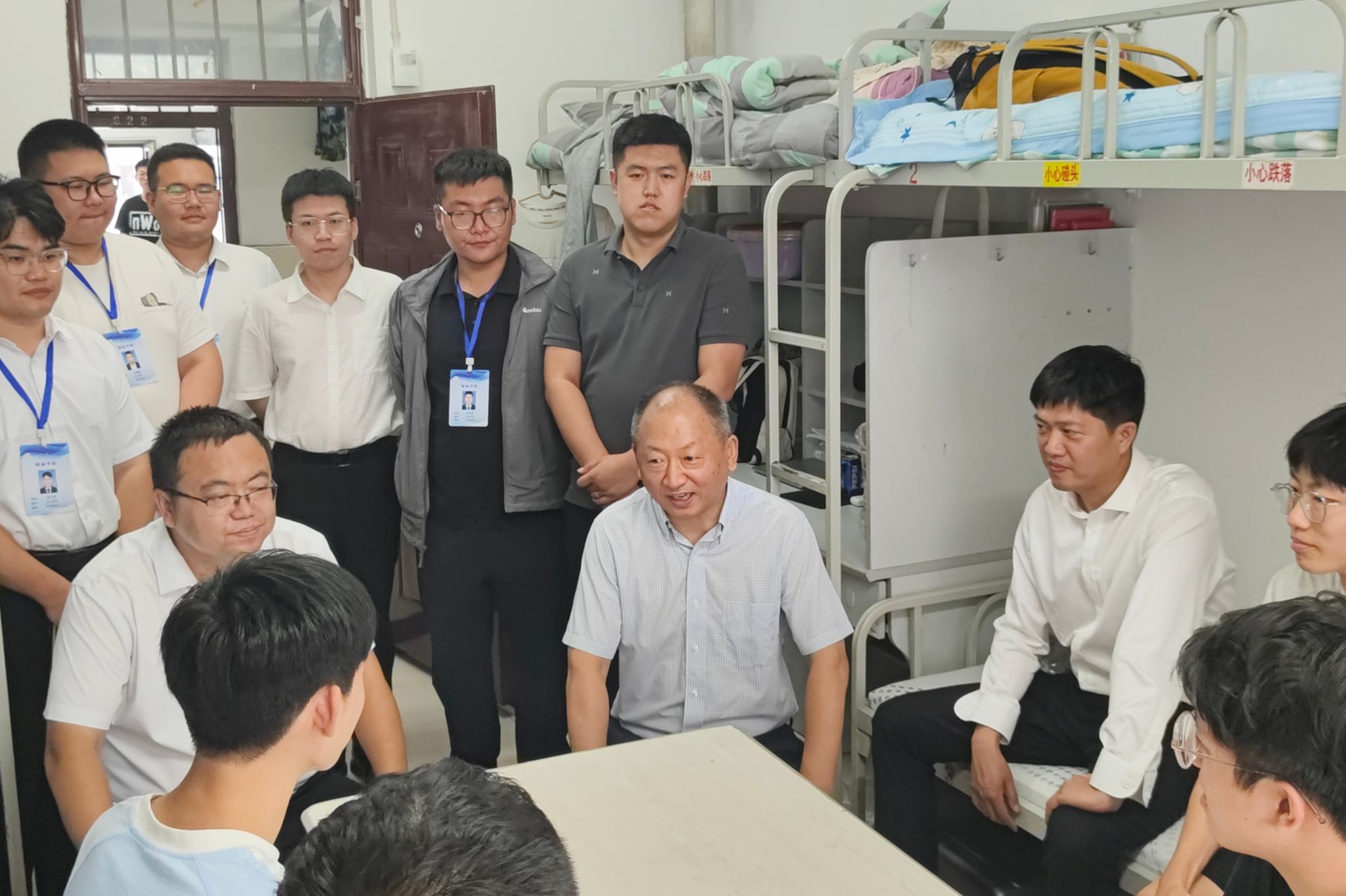 822日,公司召开新生迎新工作线上说明会,公司领导与新生辅导员同本、研新生及家长云端相聚。会上,钱芳系统介绍了公司发展历程、专业特色、学科优势及人才培养成果。辅导员围绕新生需求开展专项讲解。830日下午,公司领导班子与全体辅导员分组走访员工寝室,实地查看住宿环境,询问生活困难,重点关注偏远地区员工适应情况,叮嘱用电安全、尽快融入集体生活,让新生倍感温暖。