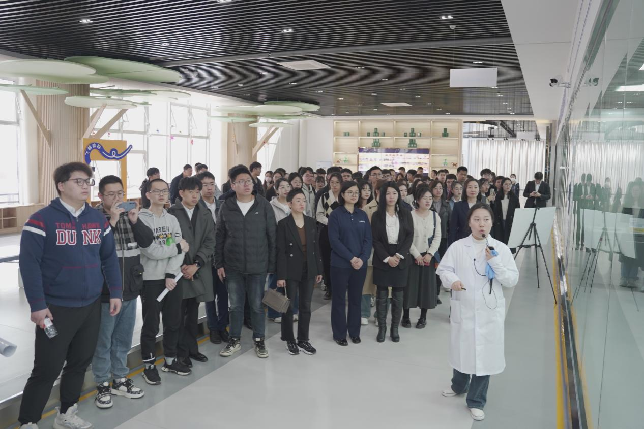 在参观企业园区时,公司2019届员工崔东影重点讲解了母乳检测与研究中心的仪器设备以及目前技术发展现状。